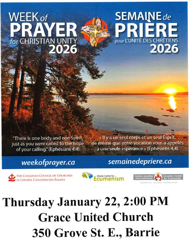 | In-Person: Northern Region WPCU Service (Barrie-Simcoe) January 22, 2026, 2:00 p.m. EST Grace United Church Barrie, ON Reception to follow. For more information contact Grace united at office@graceucc.ca. To view the poster click here. |